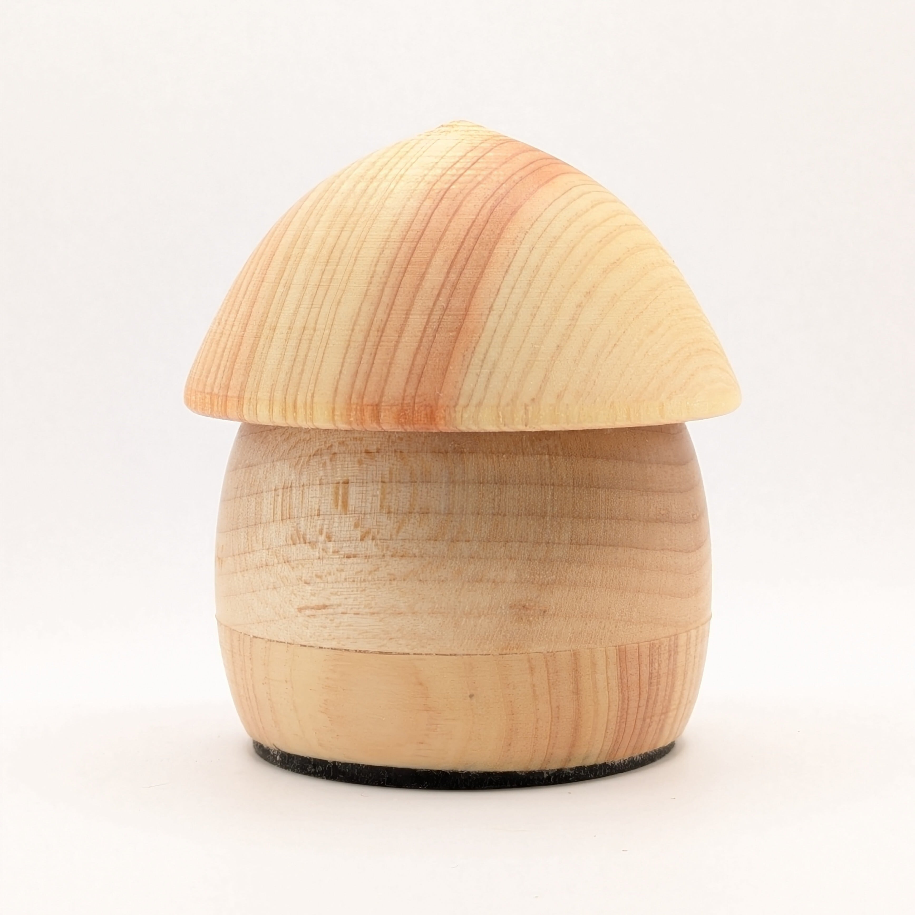 坂道を可愛らしく歩くどんぐり帽子の木のおもちゃです。どんぐりころころを乗せた土台に少しだけ傾きをつけて坂道にしてあげると、トコトコと揺れながら可愛らしく坂を下っていきます。どんぐりを歩かせる坂道の素材は、板状であれば何でも大丈夫です。トレーやお盆や絵本などもご使用いただけます。