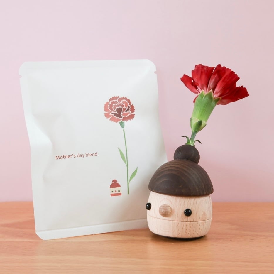 どんぐりままの一輪挿しと母の日デザインのパッケージになったドリップバッグのセット。大好きなお母さんに日ごろの感謝を込めて、お花を眺めながらコーヒーで一息つく時間をプレゼントされてみてはいかがでしょうか。