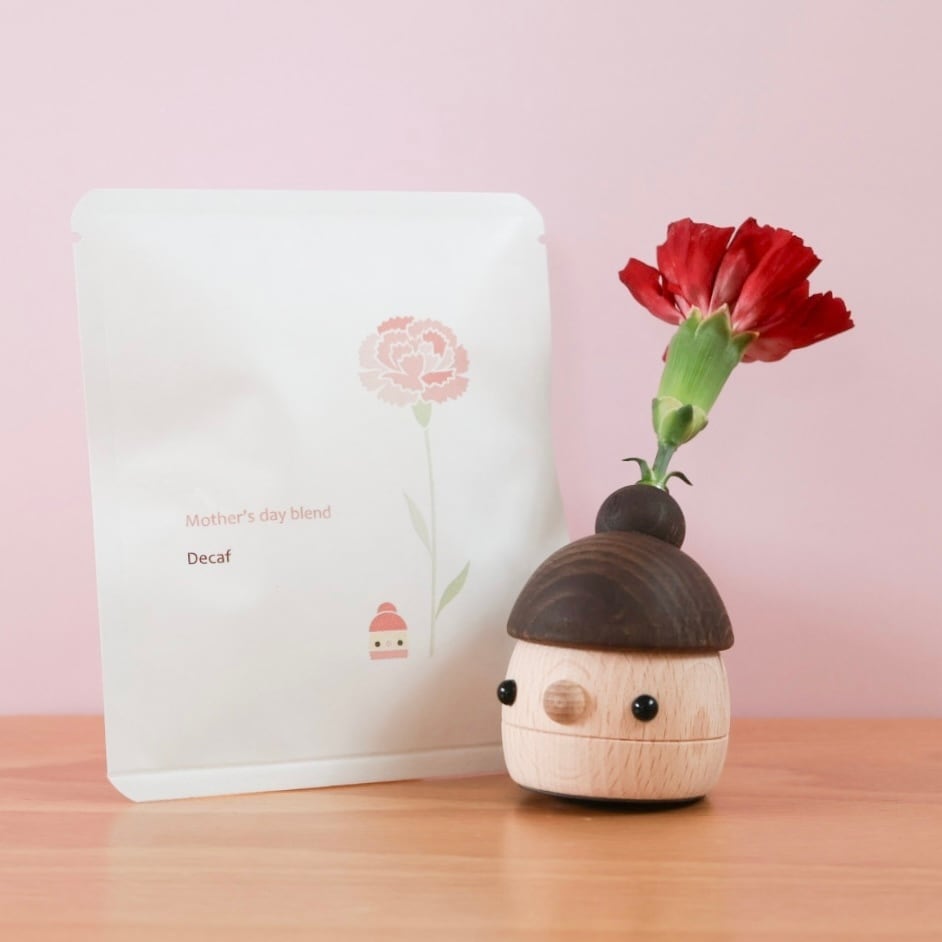どんぐりままの一輪挿しと母の日デザインのパッケージになったドリップバッグのセット。大好きなお母さんに日ごろの感謝を込めて、お花を眺めながらコーヒーで一息つく時間をプレゼントされてみてはいかがでしょうか。