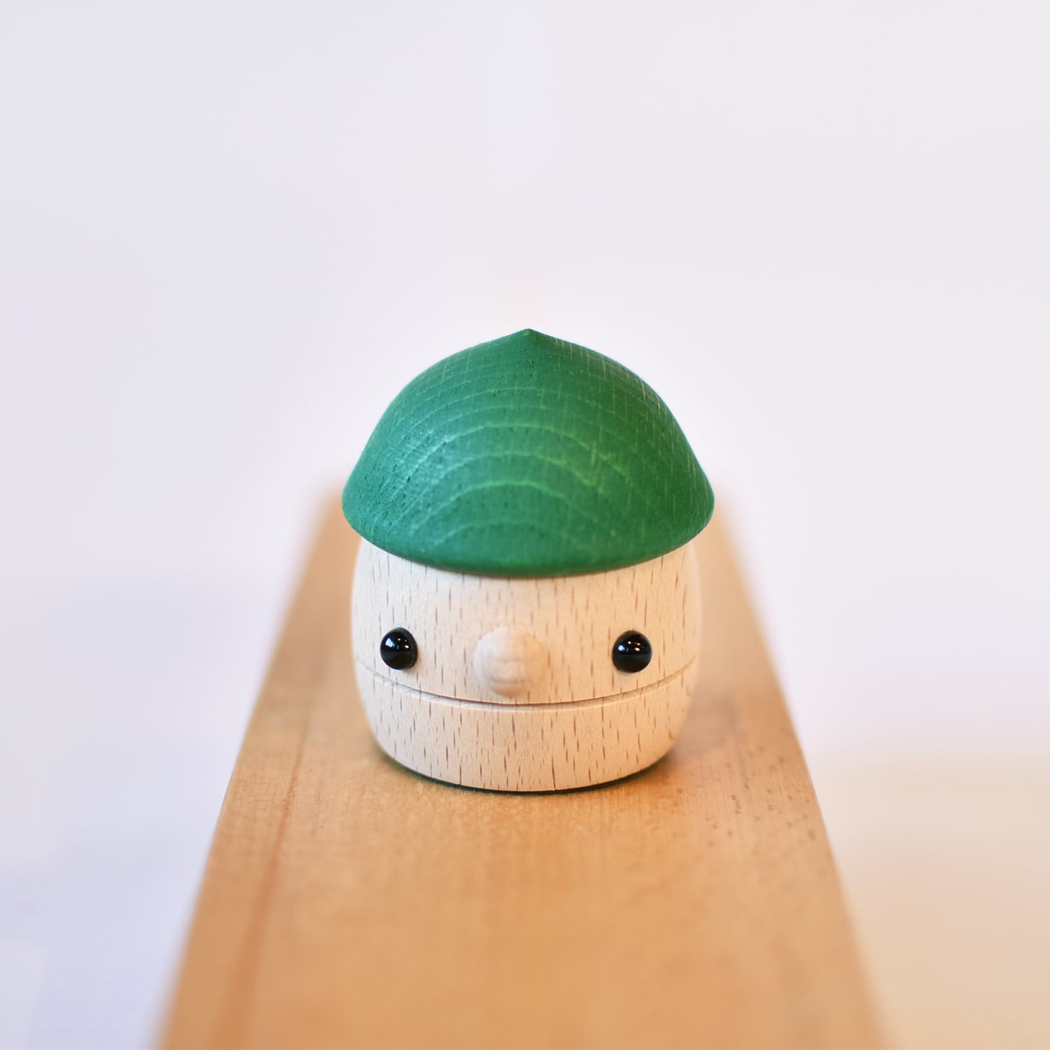 坂道を可愛らしく歩くどんぐり帽子の木のおもちゃです。どんぐりころころを乗せた土台に少しだけ傾きをつけて坂道にしてあげると、トコトコと揺れながら可愛らしく坂を下っていきます。どんぐりを歩かせる坂道の素材は、板状であれば何でも大丈夫です。トレーやお盆や絵本などもご使用いただけます。