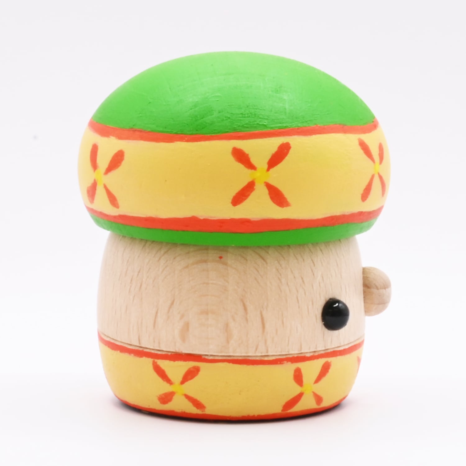記念すべき第一弾は「どんぐり工作キット」をベースに作ったオレンジと緑が特徴的などんぐりきのこ。塗装はアクリル絵の具を使っていますので、お口に入れないようにお願いします。